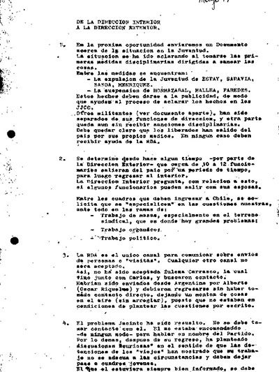 Comunicación de la Dirección Interna a Dirección Exterior sobre Expulsión de Militantes de la Juventud…
