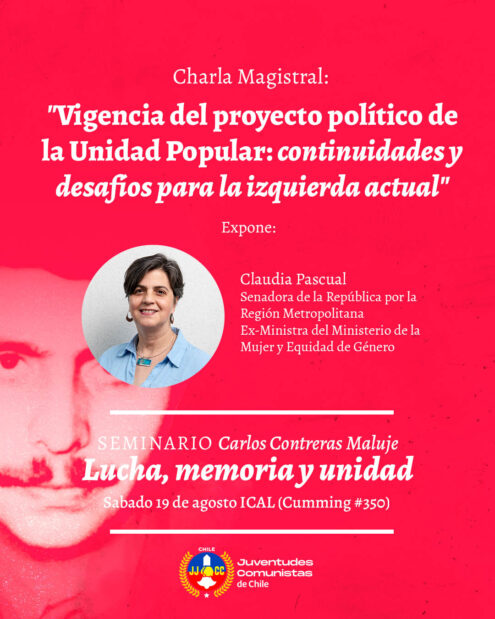El sábado 19 de agosto se realizará el Seminario Carlos Contreras Maluje “Lucha, Memoria y Unidad” de las Juventudes Comunistas de Chile en el Instituto de Ciencias Alejandro Lipschutz (ICAL).